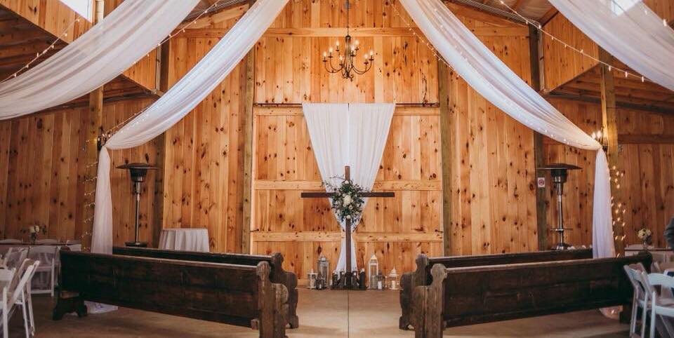 - The venue rental includes a wedding coordinator, tables, chairs, draping at the barn doors, and numerous decor pieces.